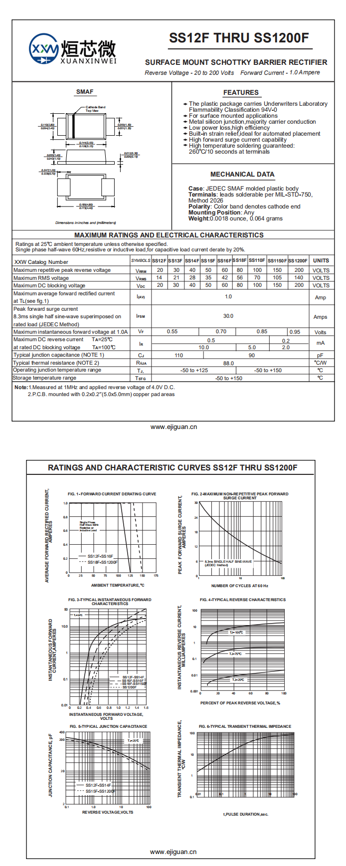 Operating junction and storage temperature range TJ,TSTG 工作溫度和存儲溫度范圍:-55to +150℃